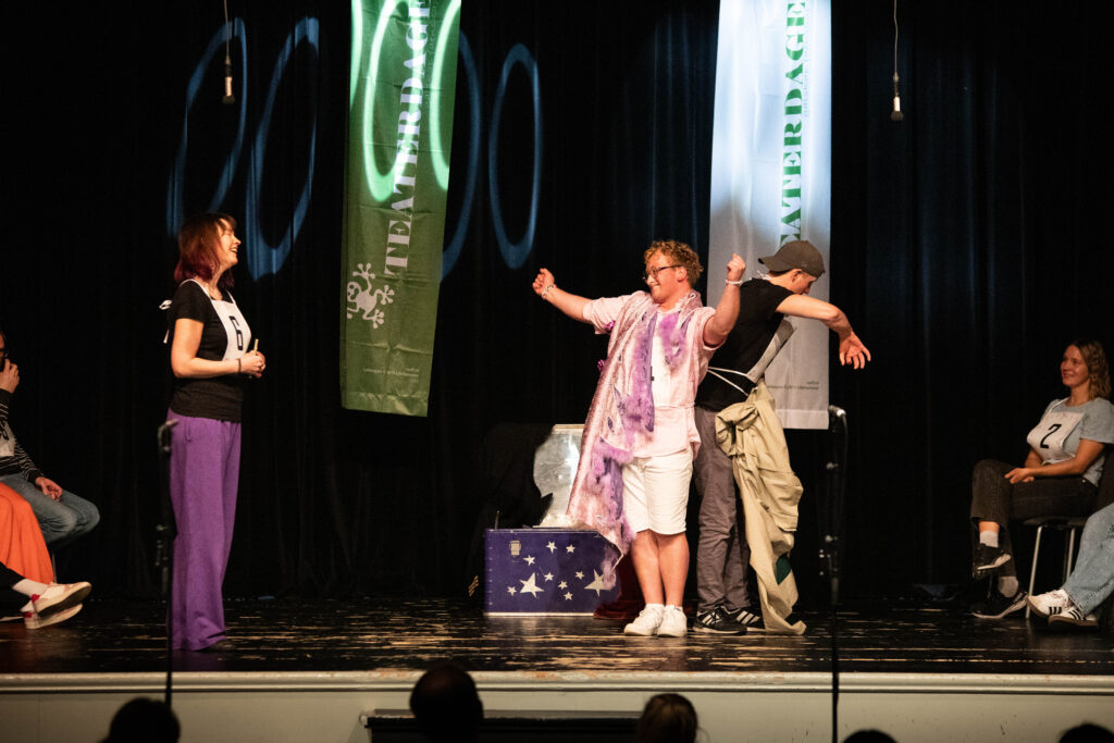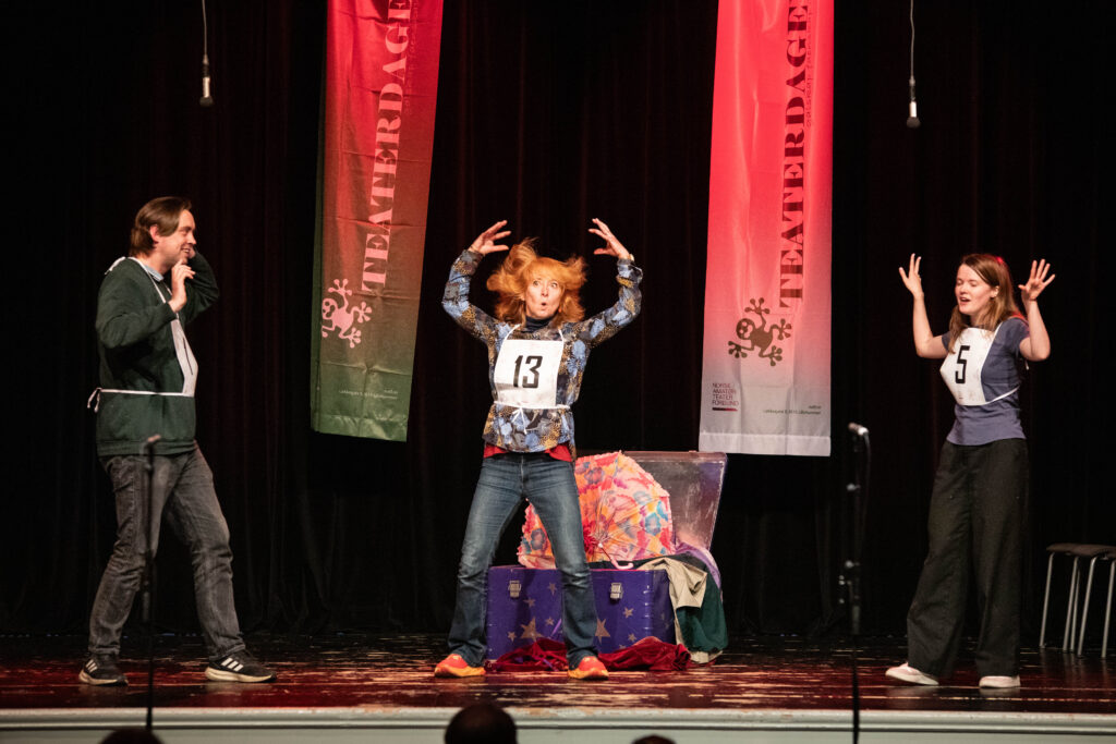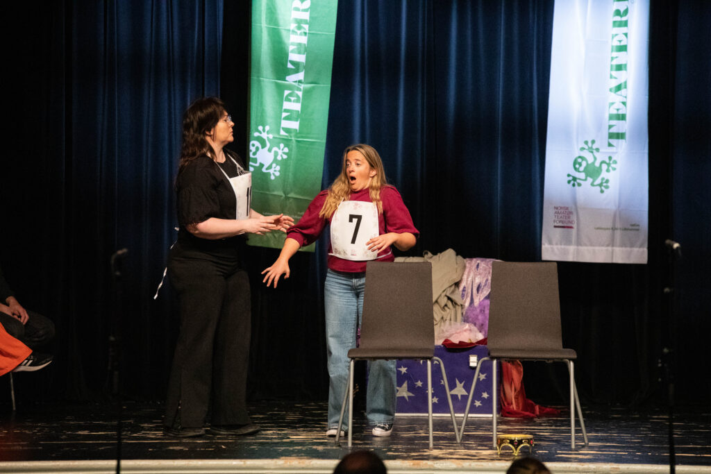 Fast innslag på lørdag er NM Teatersport™ også i år hadde vi regionale mestre fra hele landet på scenen i tillegg til JR NM-lag fra Splæsh Camp i regi av Frilynt Norge. I løpet av helgen hadde NM-deltakerne kurs i Teatersport™ med Shawn Kinley. Lagene som deltok var Frie tøyler fra Øst, Gladlaksene fra vest, Dei Improfekte fra midt, Se Det fra sør, Hamar Teatersportlaug fra Innlandet, Hent Hjelp fra nord og Norge Rundt var NM jr laget. I to timer ble publikum underholdt av improvisert teater. I siste runde kjempet Se Det bestående av Anne Mette Jacob, Thor Olav Ahnger og Eva Haakonseth Lie mot Frie Tøyler bestående av Amalie Vere, Olav Kåre Dønheim, Eva Verpe og Marius Moldestad. Frie Tøyler ble kåret til Norgesmestre i NM Teatersport™ 2025!