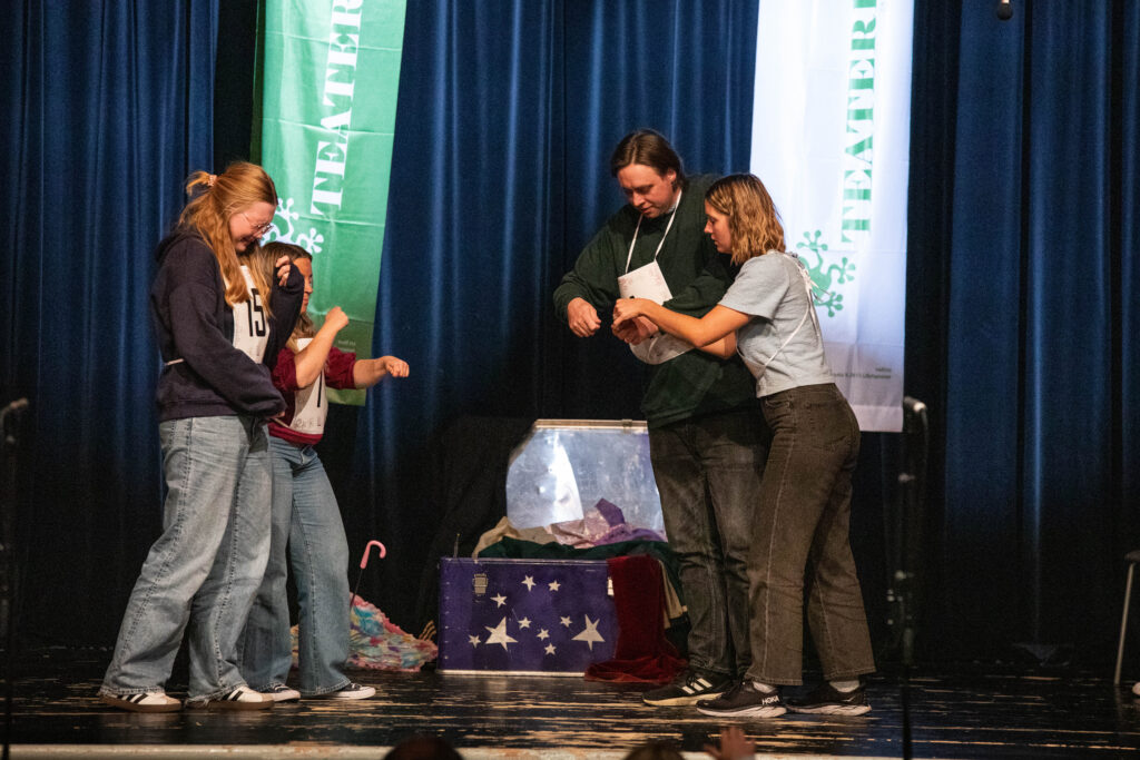 Fredag 19. september åpnet vi Teaterdagene med bursdags- hatter og kroner. En full sal deltok på den offisielle åpningen i Kulturhuset Banken, ved Olemic Thommessen. Styreleder i NATF, Frida Winther fortalte eventyr helt i tråd med årets tema, Kjærsti Gangsø, daglig leder for Studieforbundet Kultur og tradisjon holdt tale for NATF og ønsker gratulerer med 80 år! I år delte vi ikke bare ut en Bøhrrepris, men to. Årets Bøhrre, som er nominert og stemt frem av folket der ute gikk til UL Skjoldafjord for… På scenen stod også de øvrige nominerte Tilja-Teateret og Kulturbanken Bryne. Styret i NATF delte i år også ut ÆresBøhrre til Kjærsti Gangsø for… Åpningsforestillingen i år var Eventyret med Robsrud og DeaN.